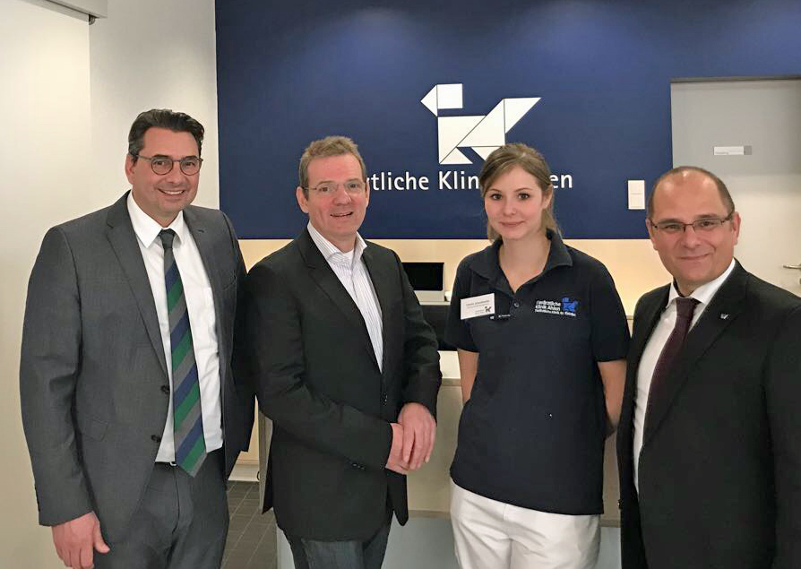 Durch eine großflächige Erweiterung im vergangenen Jahr konnten die Kapazitäten der Ahlener Tierklinik nochmals deutlich erweitert werden. Rund 80 Mitarbeiter, davon 25 Tierärzte, betreuen täglich rund hundert Kunden. „Mit der drittgrößten Tierklinik in Nordrhein-Westfalen haben wir eine Institution von überregionaler Strahlkraft am Standort, auf die wir stolz sein können und für die wir NRW weit bekannt sind“, zeigte sich Bürgermeister Dr. Alexander Berger von der Logistik und Infrastruktur beeindruckt, als er jetzt zusammen mit WFG-Geschäftsführer Jörg Hakenesch der Tierklinik einen Besuch abstattete. Für die rund 2000 Operationen jährlich verfügt die Tierklinik über alle medizinischen Instrumente einer regulären Humanklinik. Von Ultraschall über CT bis zum MRT ist alles vorhanden.