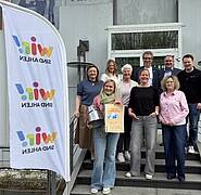 Trafen sich zur Übergabe: (vordere Reihe v.l.) Caroline Kirchner, Stefanie Fröhling, Belgin Inderwiedenstraße sowie (hintere Reihe v.l.) Uta Rathmer-Schumacher, Eva-Maria Berenbrinker, Claudia Päckert, Carlo Pinnschmidt, Martin Hosselmann und Simon Büscher