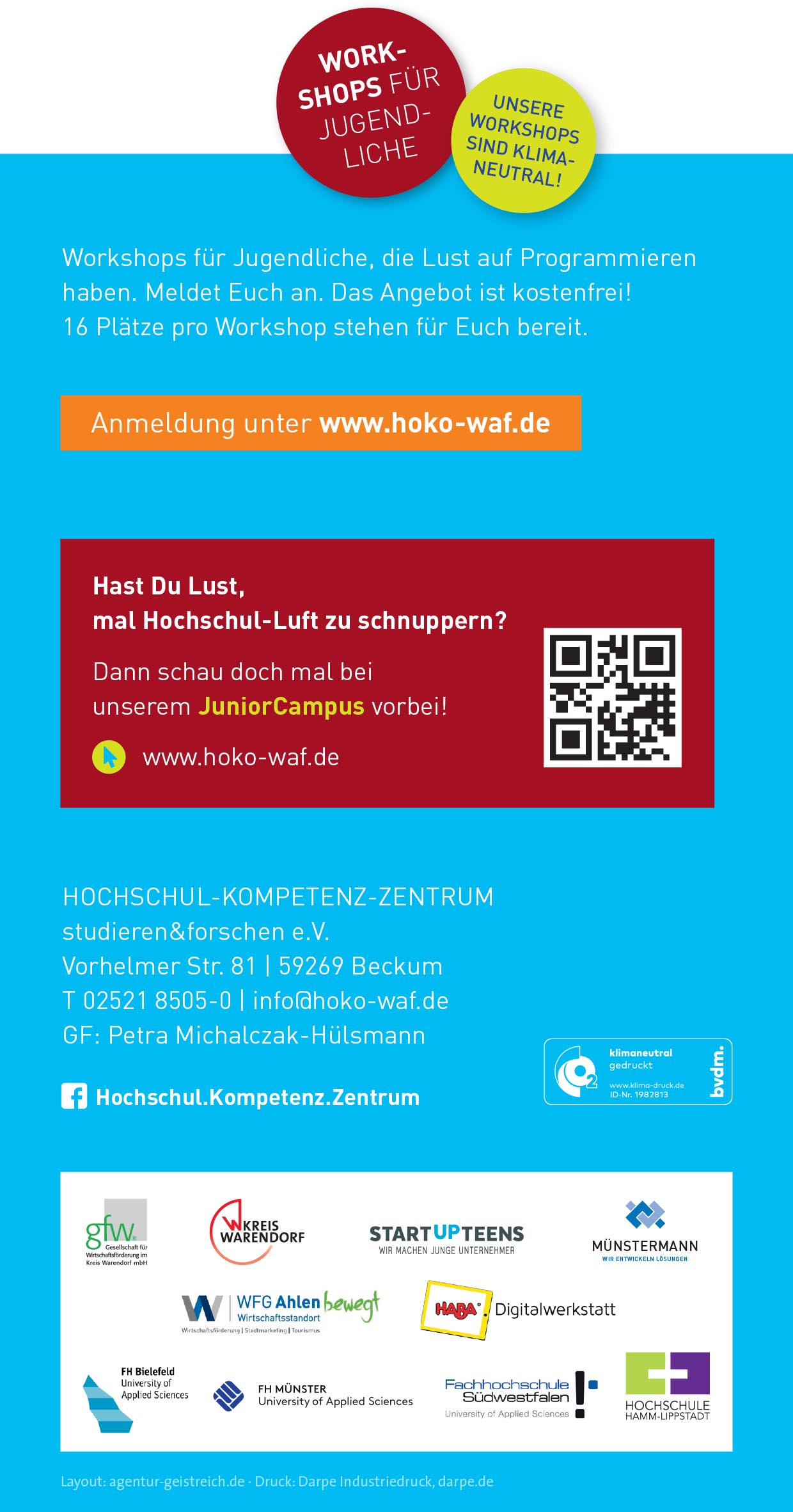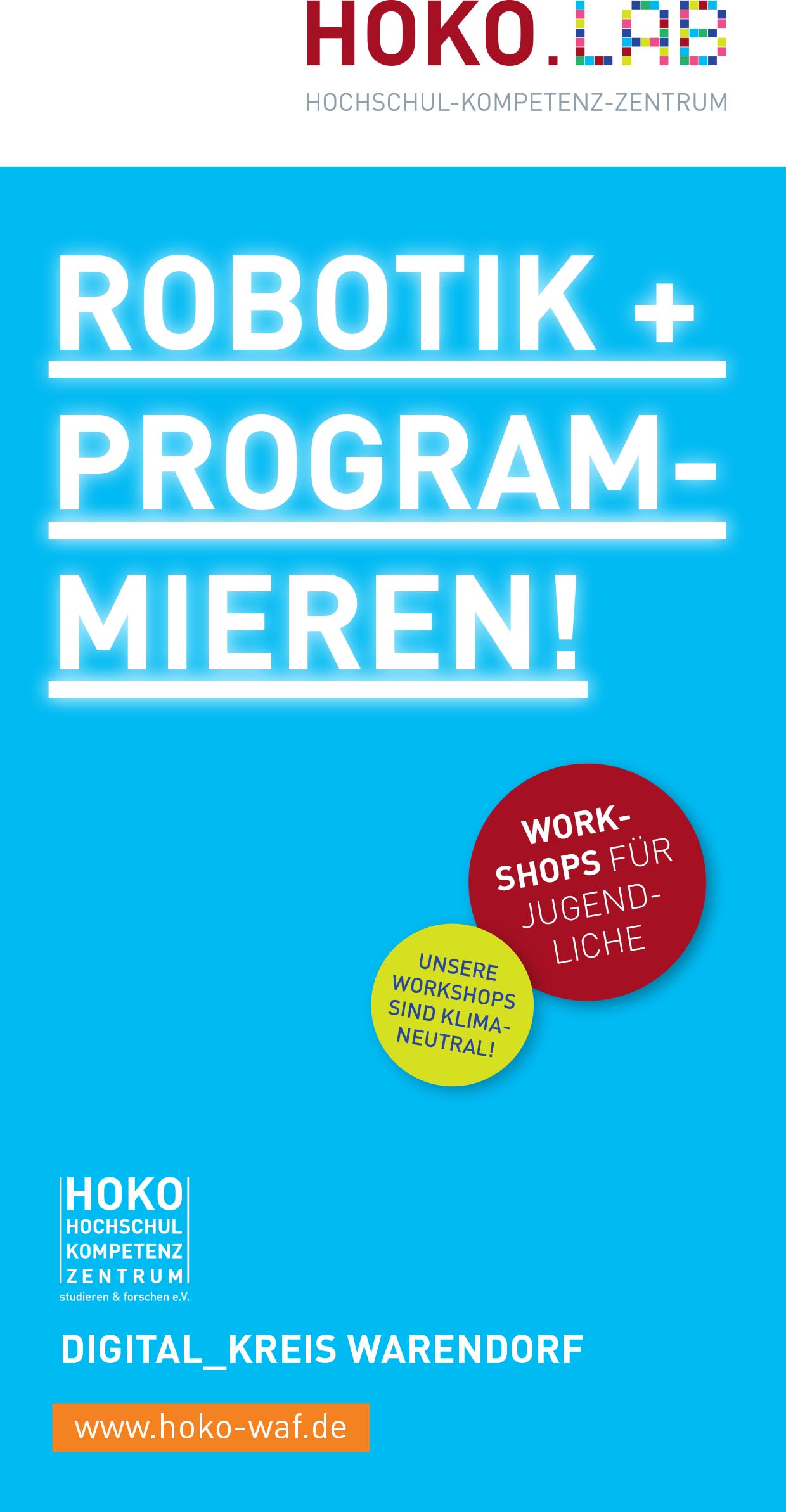 Für Jugendliche, die Apps und Roboter programmieren, Computer bauen und mit 3D-Druck experimentieren möchten, bietet das Hochschul-Kompetenz-Zentrum ein Angebot – das HOKO.LAB. Dort werden Workshops zu Coding und Scratching angeboten und es gibt Jugendlichen die Möglichkeit, digitale Technologien kennen zu lernen.