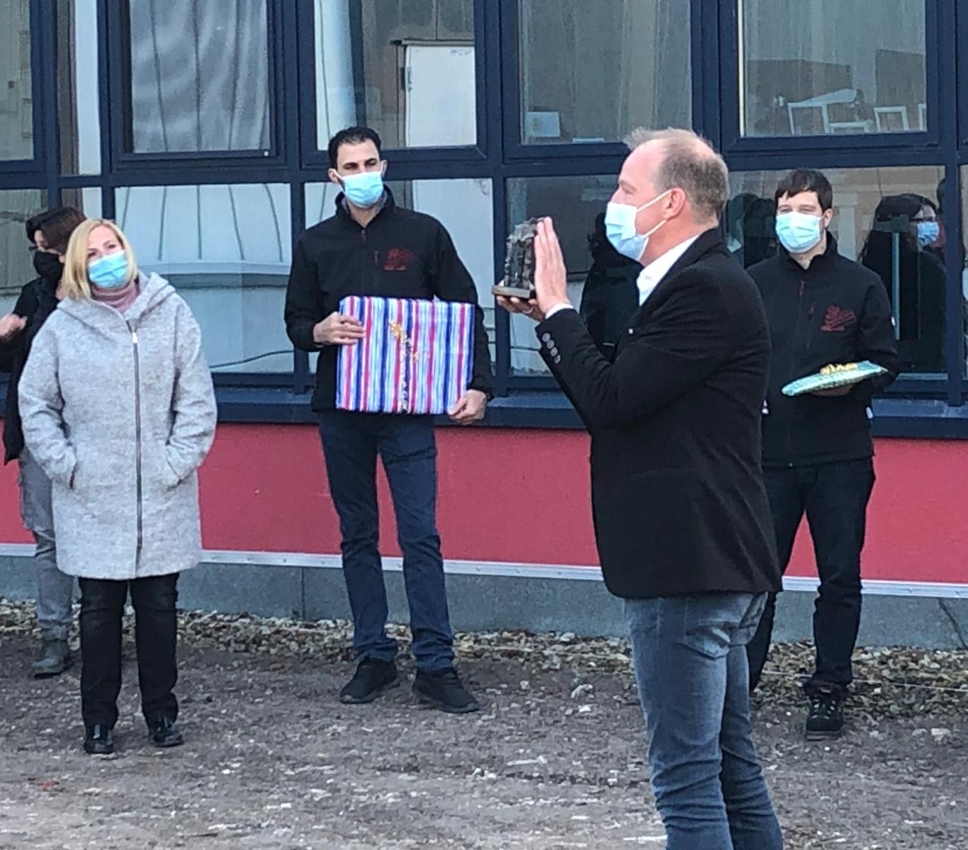 Wirtschaftsförderer Jörg Hakenesch lobt das Bekenntnis zum Standort, das der Preisträger mit seinem fest verwurzelten Spielwarengeschäft zeigt und den Weitblick, den er mit seinem europaweiten Groß- und Versandhandel zeigt: „Die Kombination ist eine unternehmerische Leistung, die mich sehr beeindruckt“, sagt Hakenesch. Dass die Gala aktuell nicht stattfinden konnte, nahm der krisenerprobte Markus Schier gewohnt optimistisch: „Aufgeschoben ist nicht aufgehoben.“