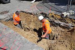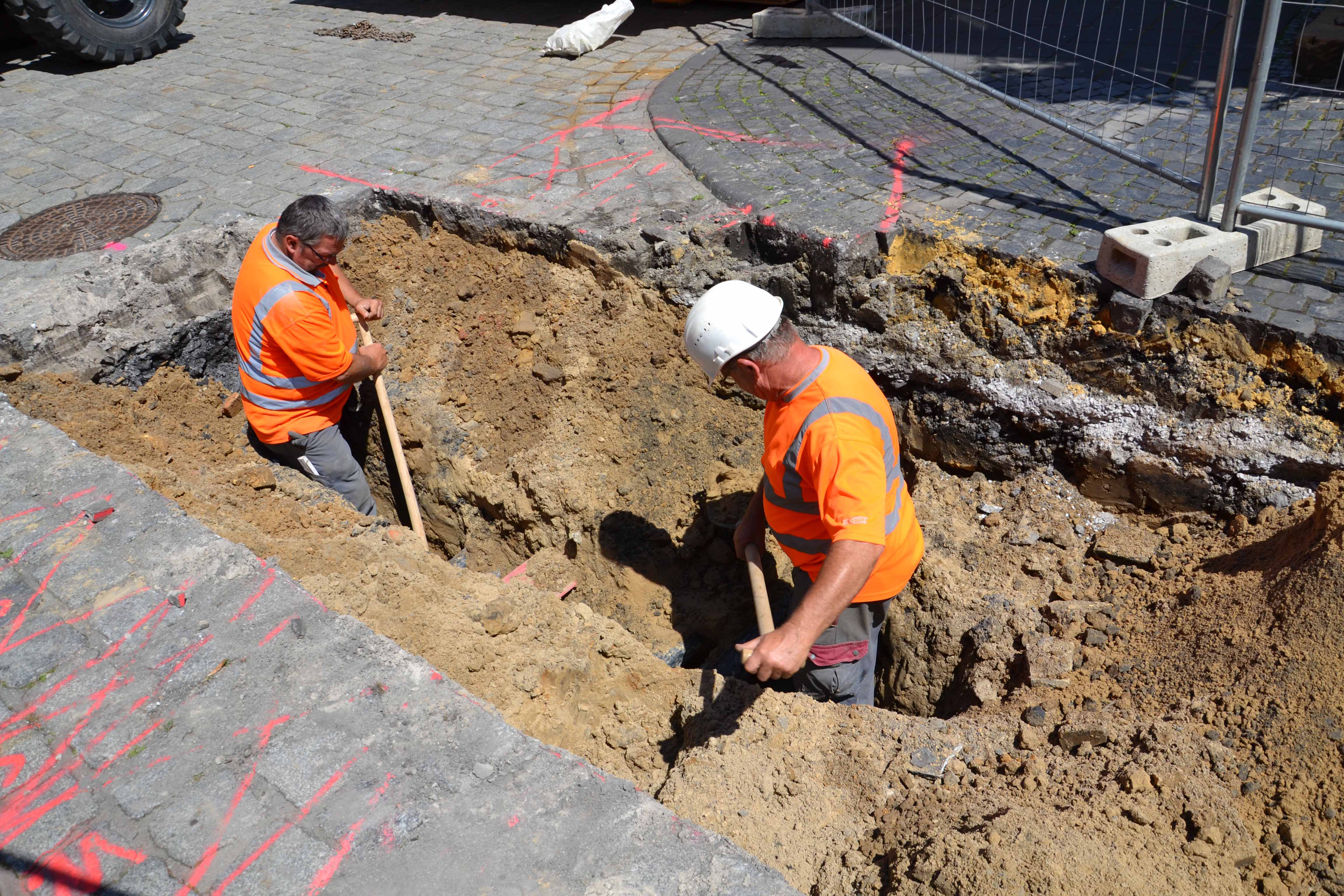 Den Anfang der jetzt gestarteten Bauarbeiten machen die Ahlener Umweltbetriebe. In offener und geschlossener Bauweise saniert in ihrem Auftrag die Firma Riesenbeck rund 130 Meter Mischwasserkanal und defekte Hausanschlüsse, wie Betriebsleiter Robert Reminghorst erklärt. Aufgegeben wird dabei der von 1911 stammende Altkanal. Seine Funktion übernimmt der im „Inliner“-Verfahren erneuerte Kanal von 1978. Bis Ende August soll alles fertig werden, dann übernehmen die Stadtwerke die Baustelle.