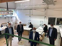 Das Thema Mund- und Nasenschutz betrifft spätestens seit dem 27. April nicht nur Mitarbeiterinnen und Mitarbeiter im Gesundheitswesen, sondern jeden, der in ein Geschäft einkaufen geht oder sich beim Friseur die Haare schneiden lassen möchte. Stammten in der Vergangenheit die Masken oftmals aus Asien, haben sich in den vergangenen Wochen viele Betriebe in Deutschland auf die heimische Fertigung spezialisiert. So auch die Ahlener Firma F.O.S Umwelt- und Filtertechnik. Eigentlich gehören der Bau von Industriefiltern und der Anlagenbau zu den Kernprodukten des Unternehmens. Die aktuelle „Coronakrise“ eröffnet jedoch ein völlig neues Anwendungsfeld, erzählt Geschäftsführer Christian Reining: Die Filterspezialisten haben sich kurzerhand entschlossen, vor dem Hintergrund der Corona-Pandemie in die Produktion von Mund-Nasen-Masken einzusteigen. „Auf die Idee kam ich zum einen durch Anfragen aus dem Textilverband und der Politik. Zum anderen bot mir die neue Produktkette die Möglichkeit, die Beschäftigung meiner Mitarbeiter zu sichern“. Anstatt von Kurzarbeit, die aktuell in vielen Betrieben ansteht, wurden aufgrund der hohen Nachfrage sogar neue Näherinnen und Näher eingestellt. Ein Zustand, der den CDU-Landtagsabgeordneten Henning Rehbaum sichtlich freut: „Es ist toll zu sehen, dass Unternehmen die aktuelle Herausforderung durch das Coronavirus auch als Chance begreifen. Davon wollte ich mich mit eigenen Augen überzeugen. Insbesondere unser heimischer Mittelstand sticht hier mit kreativen Lösungsansätzen hervor“, so Rehbaum.