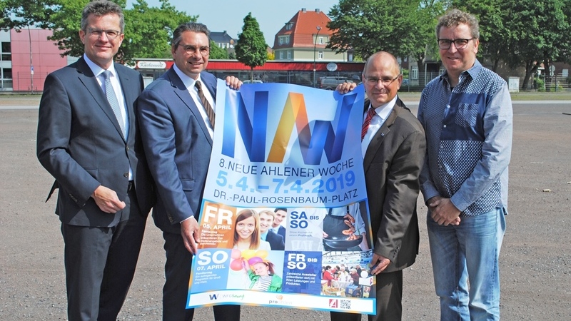 Alle Zweifel, ob man die 8. Neue Ahlener Woche auch bei ihrer nächsten Auflage vom 5. – 7. April 2019 noch immer als „neu“ bezeichnen dürfe, wischt Jörg Hakenesch beiseite: „Der Name ist und bleibt Programm, da immer etwas Neues dazu kommt“, so der WFG-Geschäftsführer beim Pressetermin auf dem Dr.-Paul-Rosenbaum-Platz. Hier findet die Gewerbeschau eine Woche vor den Osterferien im nächsten Jahr wieder statt.