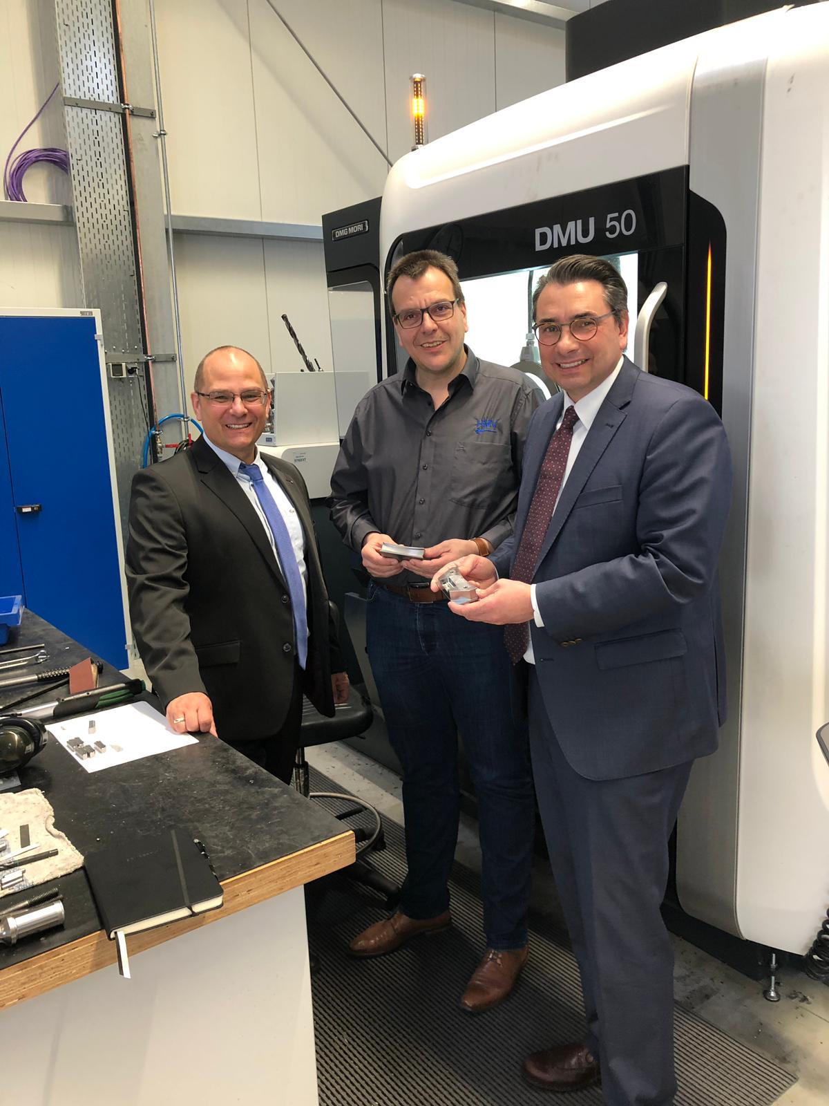 „Drehen, erodieren, fräsen oder schleifen, wir bieten den rundum Service“, schildert Austrup das Portfolio seines Unternehmens. „Durch unsere Erfahrung, sind wir zum einen etablierter Partner der Automobil und Stahlindustrie, haben aber zum anderen das Innovationsstreben eines jungen Unternehmens, das noch viel vorhat und sich über neue Herausforderungen freut“, so Austrup. Dabei wird auch das Thema Ausbildung im Betrieb groß geschrieben. So sind unter dem 40köpfigen Team auch fünf Auszubildende. „Ich freue mich immer, wenn ich Unternehmen besuche die das Thema Ausbildung hoch halten. Insbesondere beim aktuell vorherrschenden Fachkräftemangel im Handwerk ein gute Nachricht, wenn das Know-how an kommende Generationen weitergegeben wird“, so Berger.